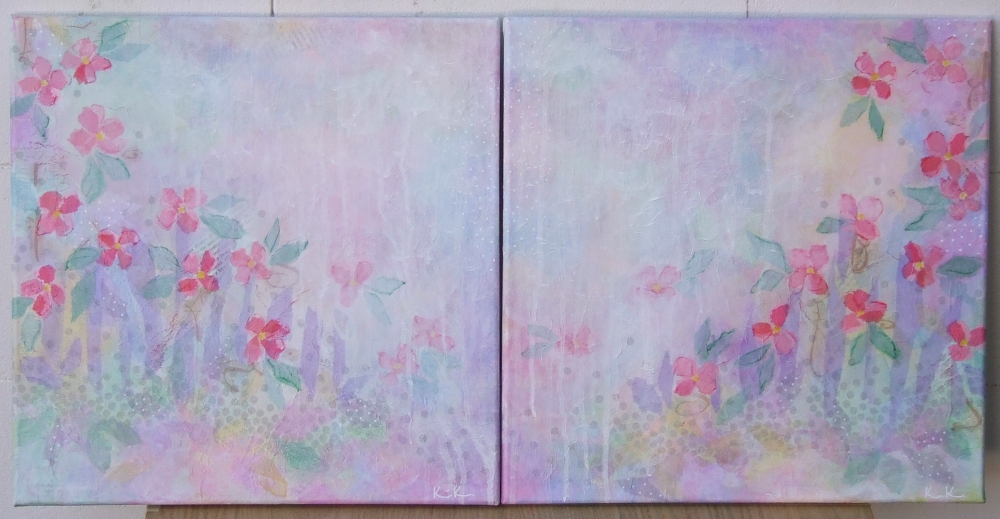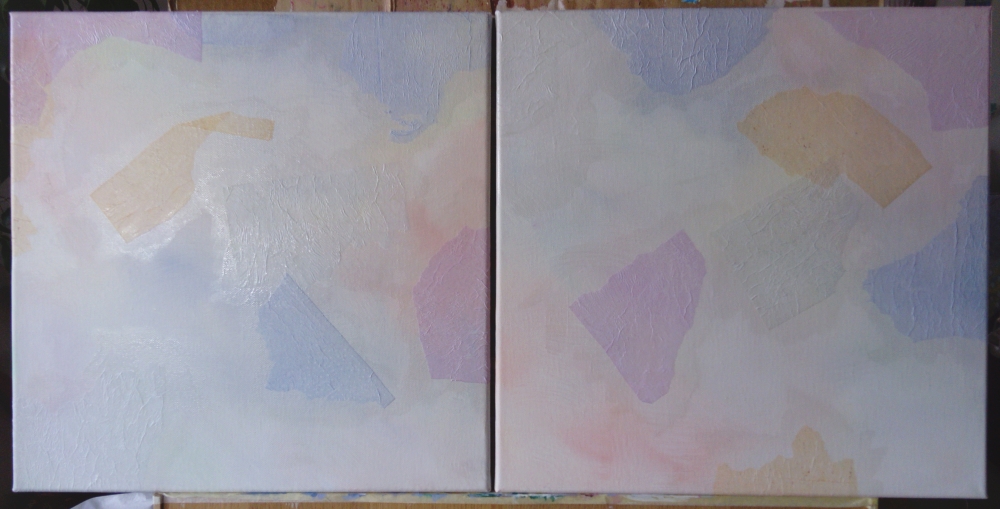 Poslední dobou jsem začala fotit rozpracované obrazy v různých fázích procesu. Jednak abych měla "na památku" jejich podoby v raných stádiích vzniku, ale hlavně – jelikož tvořím nejradši úplně intuitivně, bez velkého plánování, jsem si chtěla zdokumentovat jednotlivé fáze mého procesu, abych ho mohla lépe pochopit a poučit se z něj.